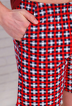 Хлопковые мужские шорты укороченной модели в стильную клетку - классный вариант для дома и отдыха! Пояс на резинке, удобные боковые карманы. Ткань - кулирка, мягкая и очень приятная к телу. |