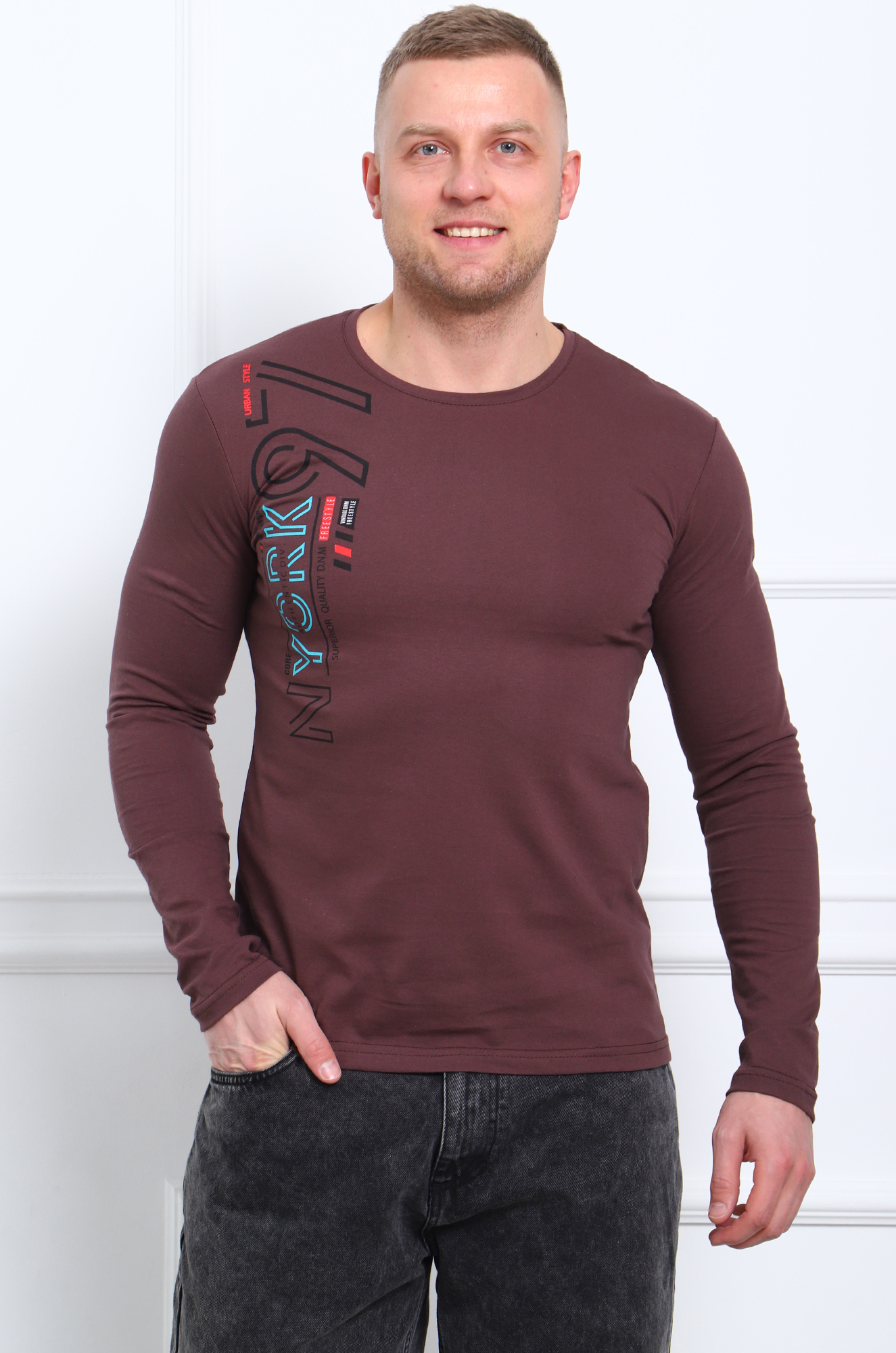 Мужской лонгслив - хлопковая футболка с длинным рукавом - идеальный вариант на прохладную погоду. Стильный печатный принт на полочке. Модель хорошо подходит к джинсам, смотрится эффектно и создаёт модный образ. Ткань кулирка. |