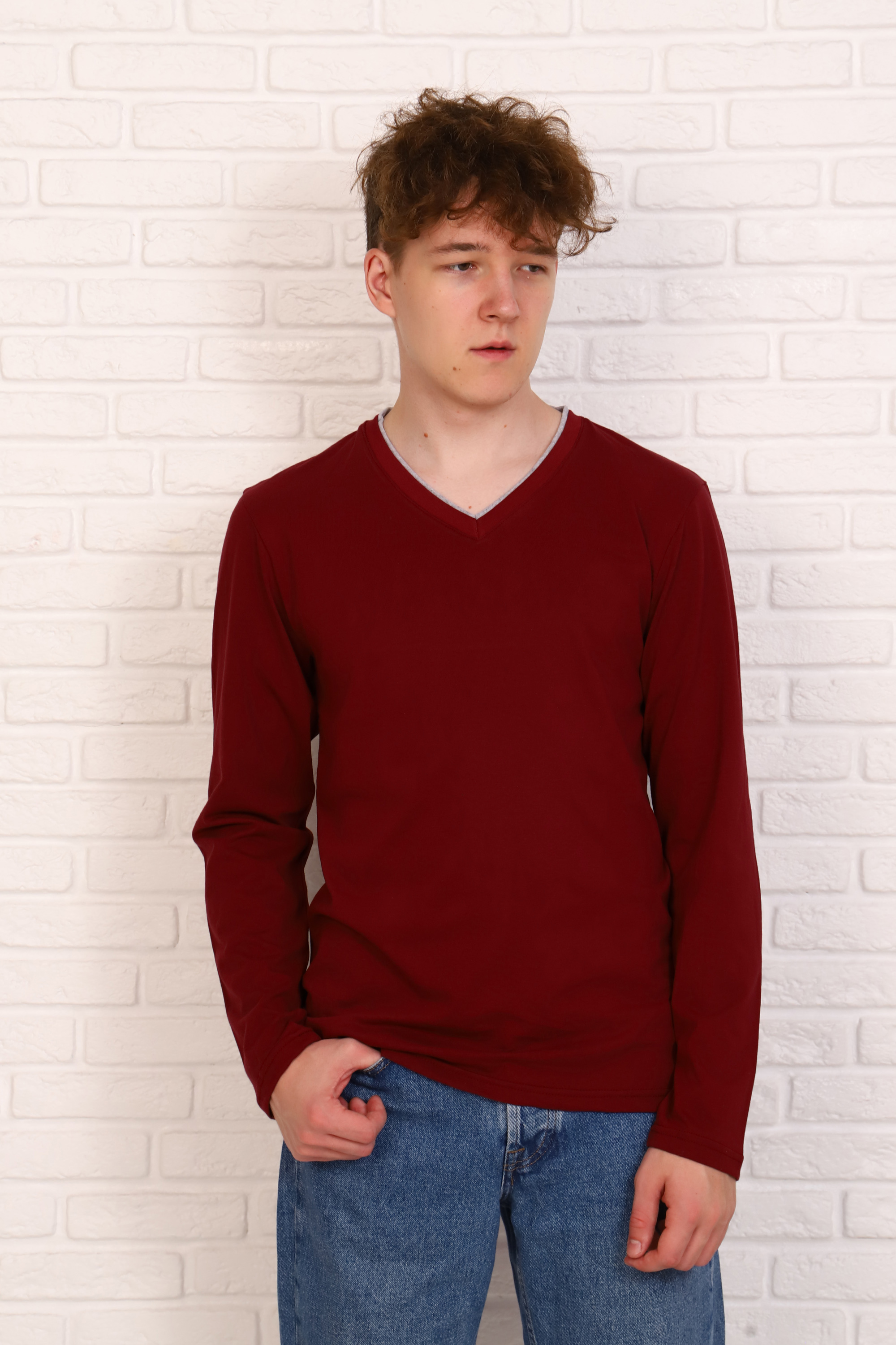 Стильная однотонная футболка с длинным рукавом и V - образным вырезом. Отделка горловины из рибаны контрастных цветов добавляет изюминку модели. Футболка универсальная, хорошо сочетается как с деловой так и с повседневной одеждой. Ткань кулирка - 100% хлопок, мягкая и приятная к телу. |