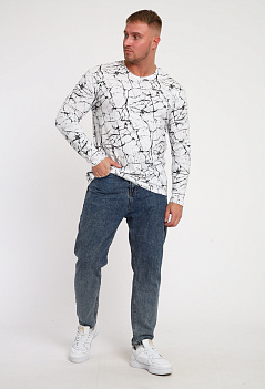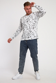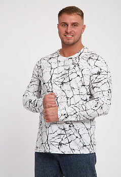 Хлопковая мужская футболка с длинным рукавом. Модель прямого кроя. Эффектная, стильная расцветка "под мрамор" отлично сочетается с джинсами. Ткань кулирка. |