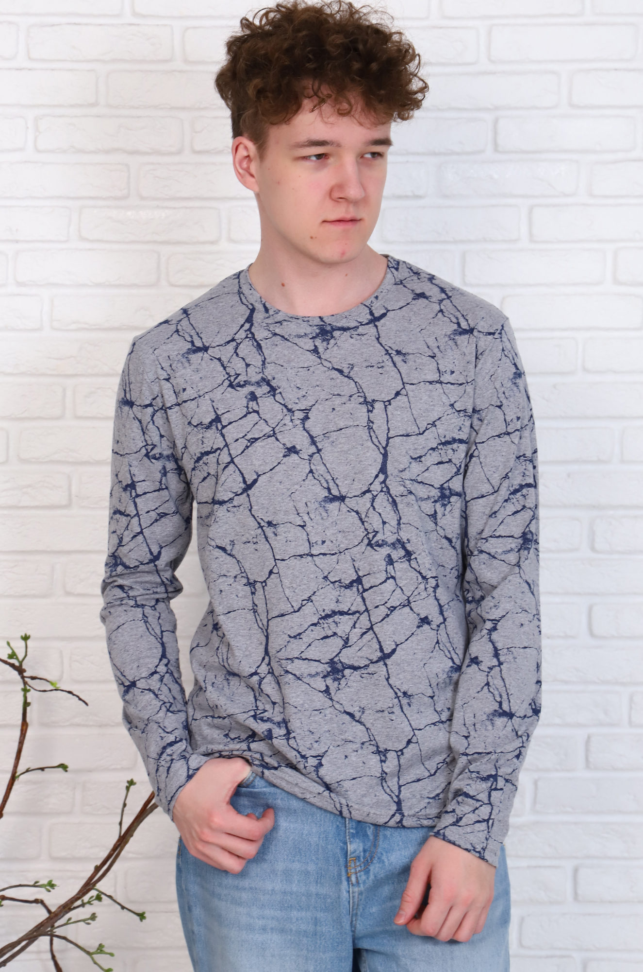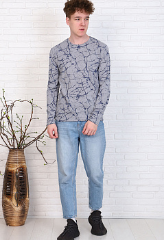 Хлопковая мужская футболка с длинным рукавом. Модель прямого кроя. Эффектная, стильная расцветка "под мрамор" отлично сочетается с джинсами. Ткань кулирка. |