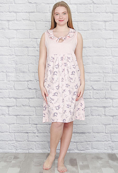 Ночная сорочка из мягкого хлопка с отрезной талией, горловина на завязках, с небольшой "рюшкой". Ткань — кулирка с набивным рисунком. Обратите внимание!!! Цвета в ассортименте! Рисунок на ткани можеи меняться! |