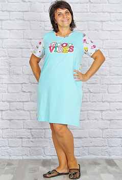 Красивая комбинированная сорочка с веселым принтом на полочке. Модель прямого свободного кроя, по бокам с разрезами - очень удобна и для сна, и домашнего отдыха. Ткань - кулирка. |