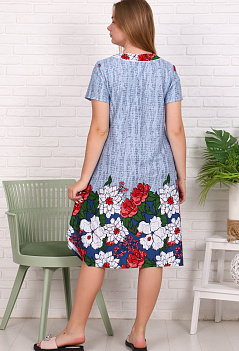 Лёгкое хлопковое платье с коротким рукавом свободного, трапециевидного кроя. Оригинальным эту простую модель делает асимметричное оформление низа. Ткань кулирка. |