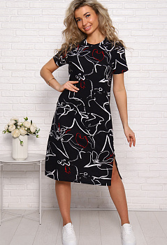Стильное женское платье из натурального хлопка. Модель свободного прямого кроя. По бокам разрезы. Ткань кулирка - мягкая и приятная к телу, комфортная в любую погоду. |