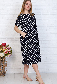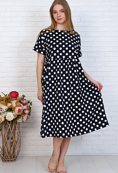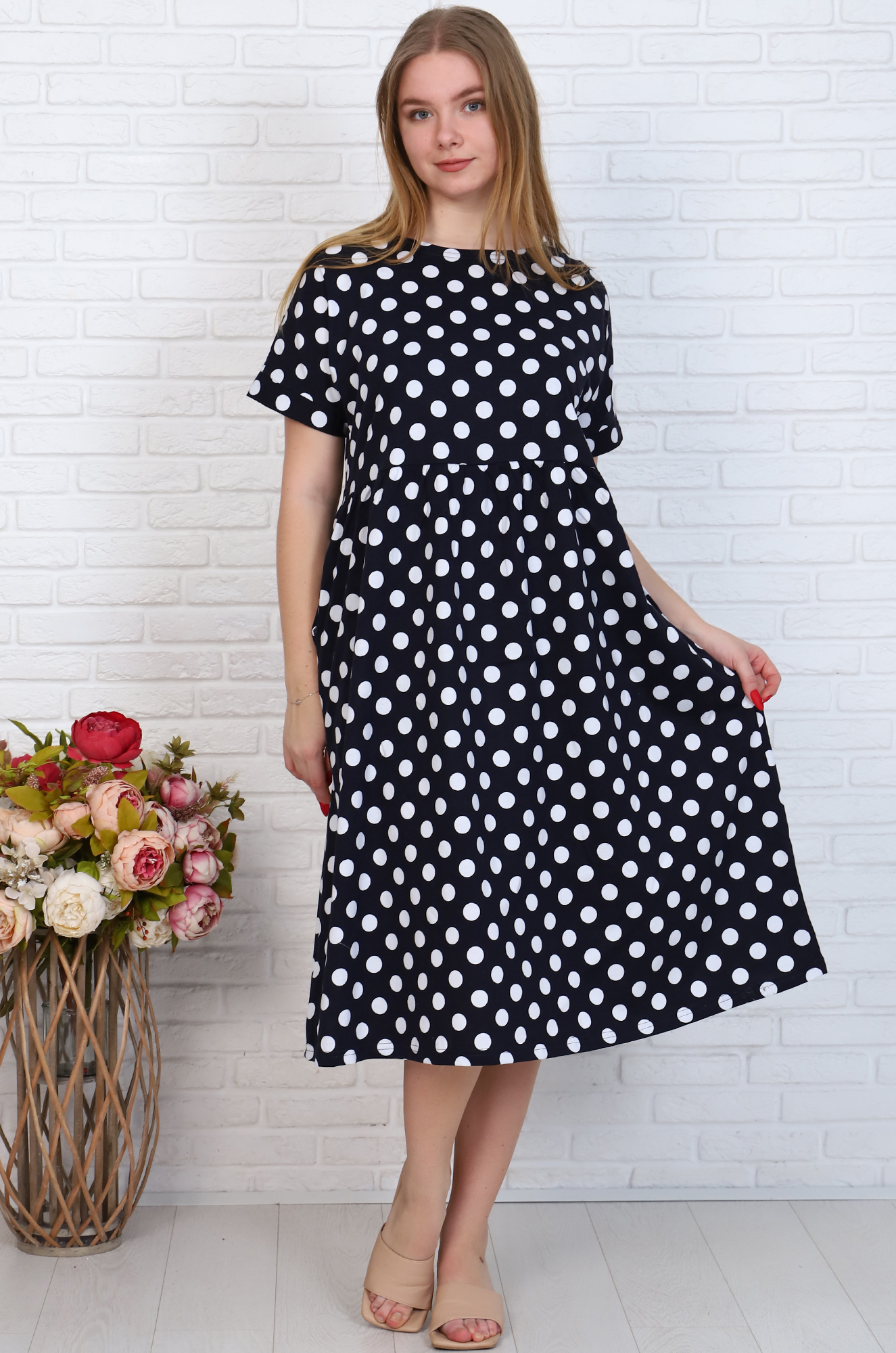 Хлопковое женское платье комфортной длины миди. Модель свободного кроя, с отрезной талией, рукав цельнокроенный, в боковых швах карманы. Пышная юбка придаёт лёгкости, романтики и женственности. Ткань кулирка - мягкая, лёгкая и приятная к телу. |