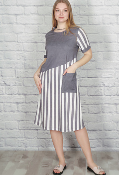 | Описание: | Хлопковое женское платье прямого кроя комфортной длины. Модель оригинально скомбинированна, с накладным карманом на полочке. Ткань кулирка - лёгкая, мягкая и приятная к телу. |