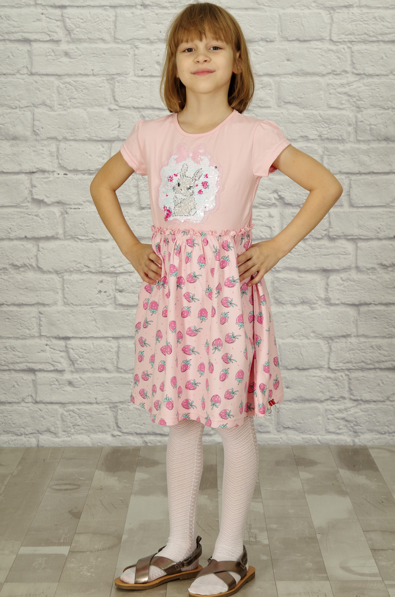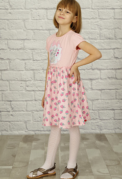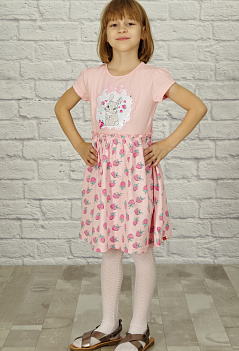 Симпатичное хлопковое платье для девочки. Модель с коротким рукавом и отрезной юбкой. Полочка однотонная, украшена оригинальной аппликацией. Отличный вариант на выход и на каждый день! Ткань кулирка с лайкрой. |