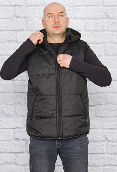 Утеплённый жилет с отстёгивающимся капюшоном и боковыми карманами на молнии. Модель прямого кроя, с застёжкой молния, воротник-стойка, подкладка флис, утеплитель - синтепон. Ткань - дюспа. Жилет универсальный, подойдёт как мужчинам так и женщинам. |