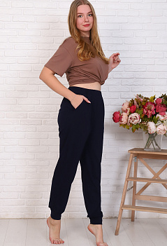 Однотонные хлопковые брючки с боковыми карманами, снизу на манжете, пояс на широкой резинке. Брюки комфортной посадки, отлично сидят на любой фигуре. Ткань - лёгкое, приятное к телу кулирное полотно. |