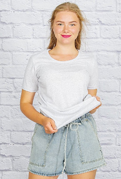 Классическая однотонная футболка из меланжированной ткани. Ткань кулирка с пэ нитью, что добавляет прочности и износостойкости. |