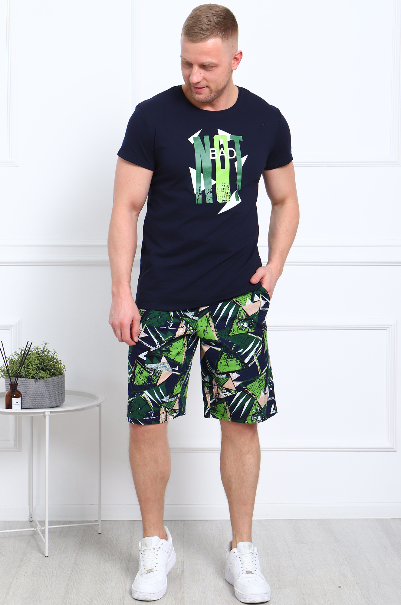 Удобный хлопковый костюм для мужчин, которые хотят выглядеть стильно даже дома! Шорты яркой расцветки, с удобными боковыми карманами, пояс на широкой резинке. Футболка однотонная, прямого кроя с печатью на груди, с коротким втачным рукавом. Ткань - мягкое и приятное к телу кулирное полотно. Отличный вариант одежды для дома и отдыха от Ивановского производителя! |