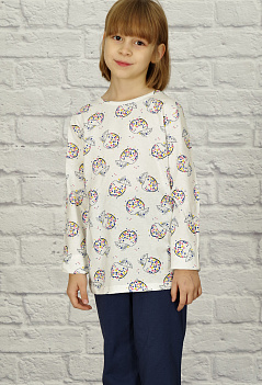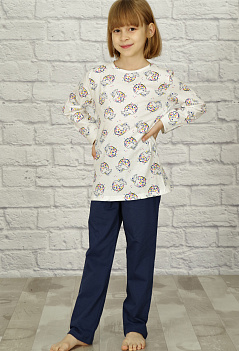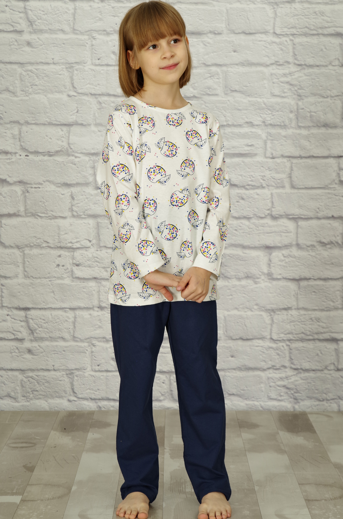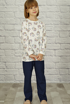 Хлопковая пижамка для девочек подойдёт и для сна и для отдыха. Футболка прямого кроя, с длинным рукавом. Брючки свободные, прямые, пояс на резинке. Ткань кулирка, мягкая и приятная к телу. |