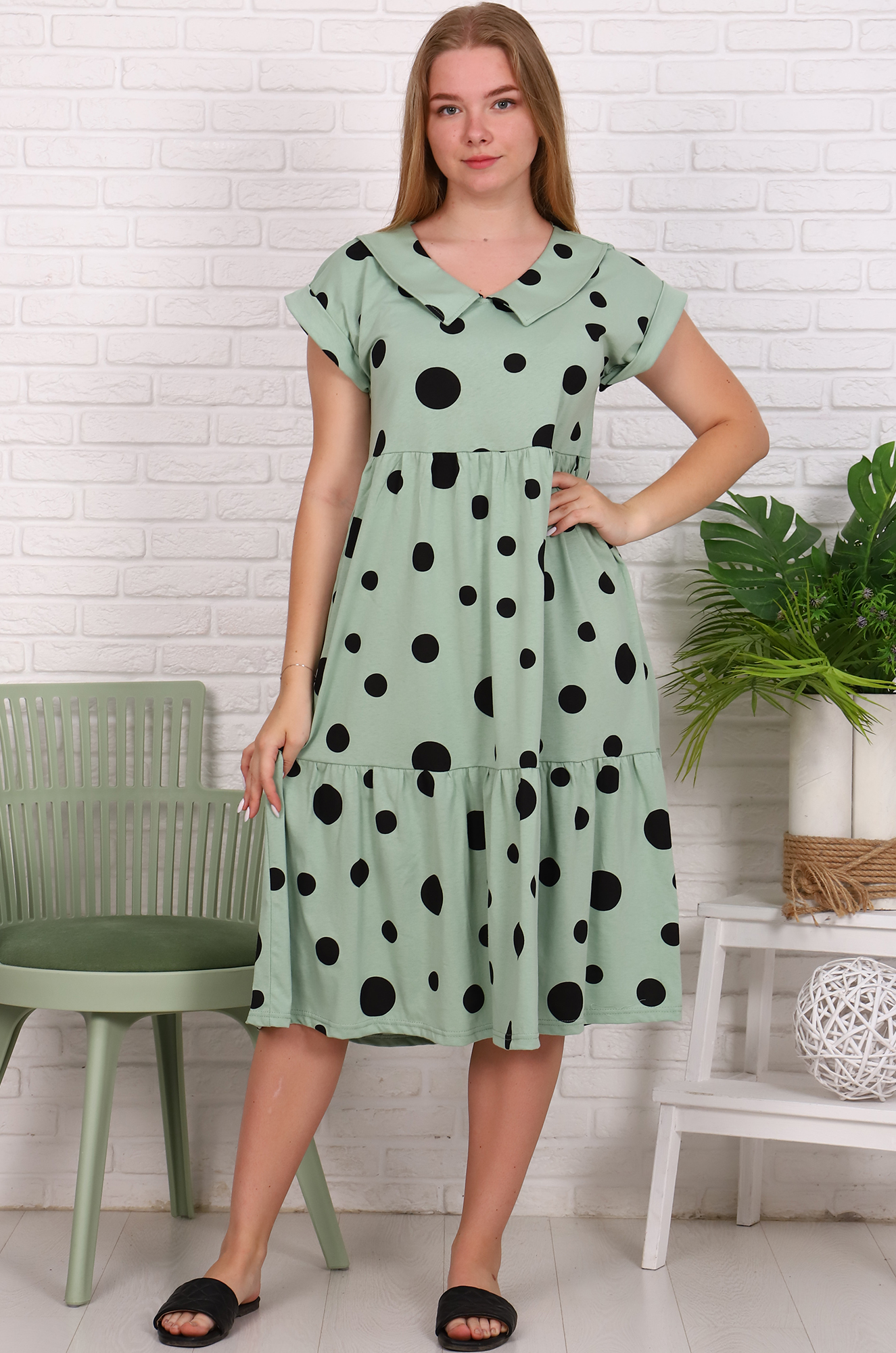 Очень симпатичное женственное платье с воротничком. Модель с отрезной кокеткой и пышной двухъярусной юбкой, рукав цельнокроенный, с подворотом. Идеальный вариант прогулок, романтических встреч и отдыха на море. Ткань - мягкое, лёгкое, "дышащее" и приятное к телу кулирное полотно. |