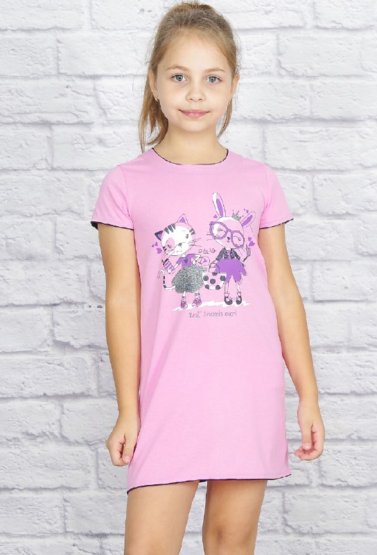 Лёгкое хлопковое платье прямого свободного фасона, прекрасно смотрится на маленьких модницах. На полочке печатный принт, сзади горловина на пуговке. Ткань кулирка. |