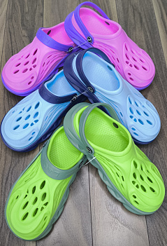 | Описание: | Практичные, современные и модные "кроксы" для женщин! Удобный мягкий и лёгкий материал - ЭВА, регулируемый задник легко превращает сандалии в сланцы - отличный вариант для дачи или пляжного отдыха. Производство Россия. |