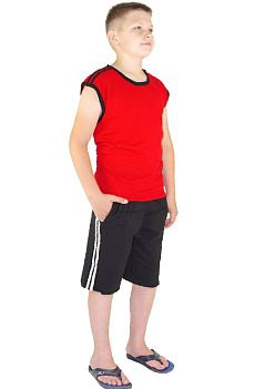 Спортивные подростковые шорты с удобным широким поясом выполненном на специальной машине. Изделие дополнено втачными карманами и декорировано контрастными лампасами. Комфортный спортивный вариант одежды для летнего сезона. |