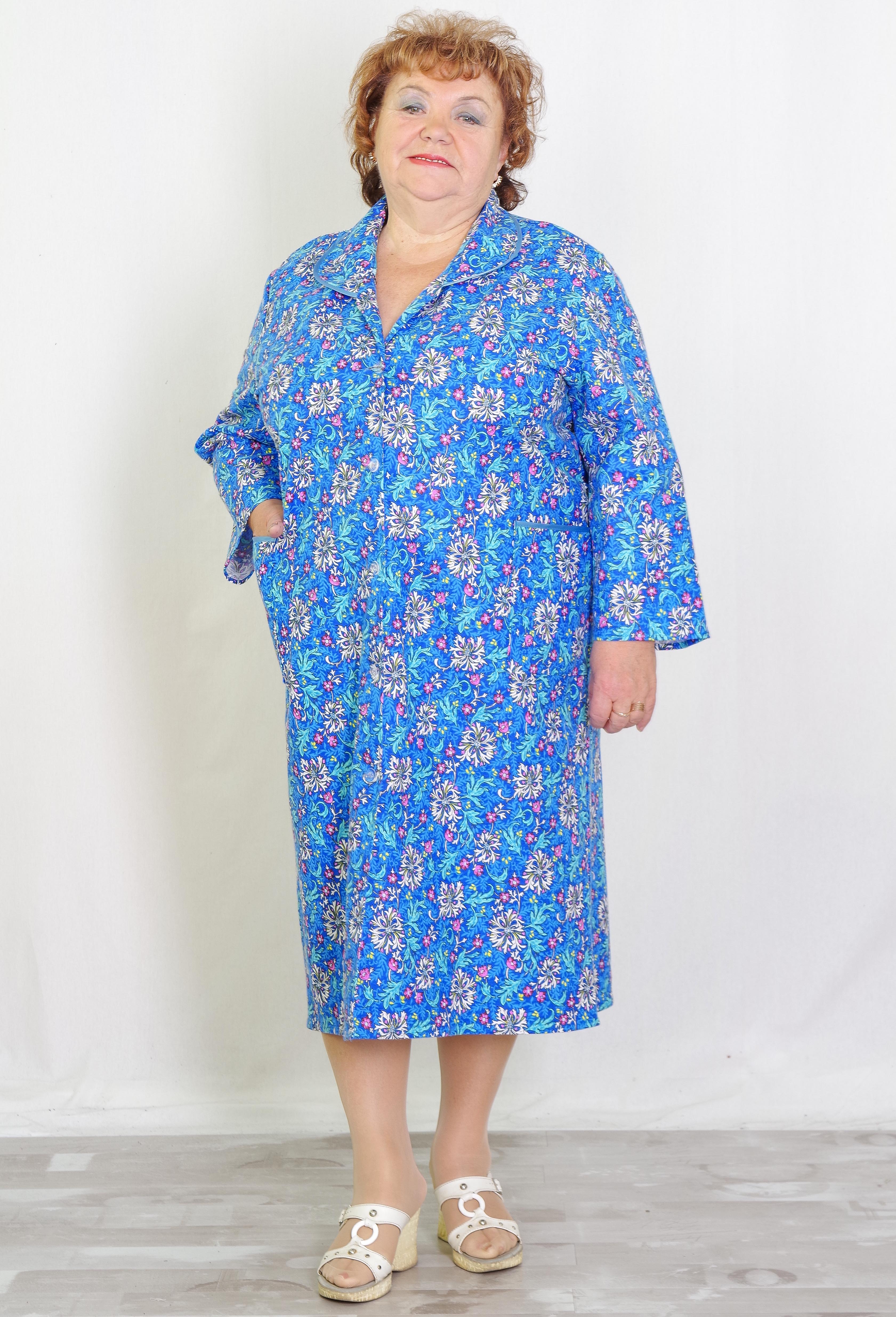 Халат из фланели на пуговицах. Модель с карманами, длинными рукавами, сзади удобно завязывается на поясок. |