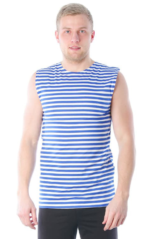 Майка-тельняшка изготавливается из трикотажной кулирной ткани с чередующимися горизонтальными синими и белыми полосками. Полосатые тельняшки стали традицией и весьма популярны в качестве романтического символа моря, морской службы, храбрости и удали. На заметку: Тельняшки с полосками различных цветов для различных родов войск ВС России : тёмно-синие (ВМФ), васильковые (спецназ ФСБ, Президентский полк), светло-зелёные (пограничные войска), краповые (спецназ ВВ МВД), оранжевые (подразделения МЧС). |