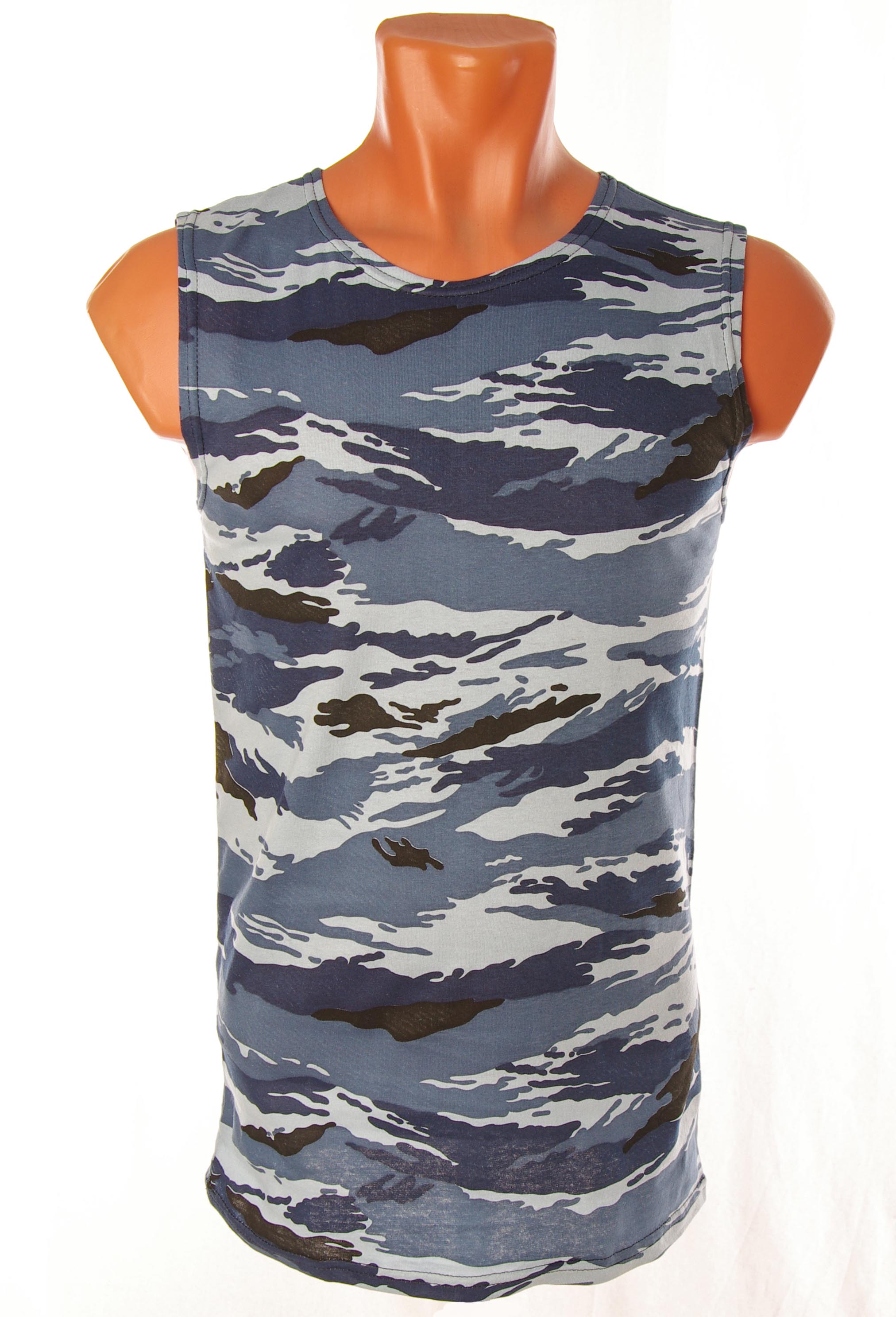 | Описание: | Майка камуфлированная, 4-х цветная, двухстороннее активное крашение. В производстве используется трикотаж - кулирное полотно, плотностью 150 г/м2, состав 100% хлопок. |