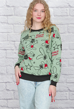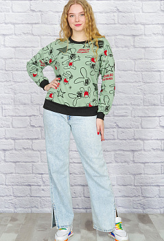 Стильный женский свитшот. Рукава и низ изделия на эластичном манжете. Удобный вариант на каждый день к джинсам и брюкам. Ткань футер с лайкрой с набивным рисунком. |
