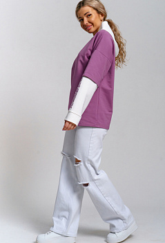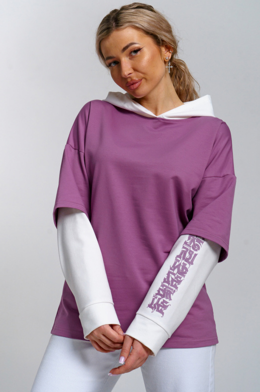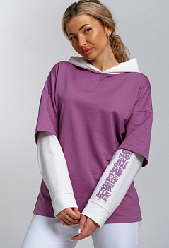 Стильная женская толстовка с капюшоном - имитация "двойки". Модель свободного кроя, на рукаве эффектный печатный принт.. Ткань - практичный, износостойкий и простой в уходе футер с лайкрой |