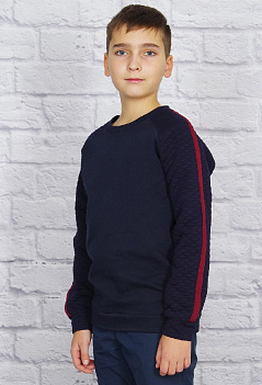 Стильная и удобная толстовка для подростков - отличный вариант на каждый день к брюкам или джинсам. Модель снизу на манжете, рукава - реглан, с контрастной тесьмой. Толстовка выполнена из комбинированных тканей: спинка и полочка из облегчённого футера с начёсом, рукава - мягкий, тёплый стёганный трикотаж капитоний. |