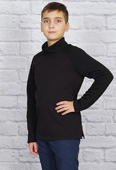 Стильная и удобная толстовка прямого кроя с воротником-стоечка - отличный вариант на каждый день к брюкам или джинсам. Рукава - реглан. Толстовка выполнена из комбинированных тканей: спинка и полочка из облегчённого футера с начёсом, рукава - мягкий, тёплый стёганный трикотаж капитоний. |