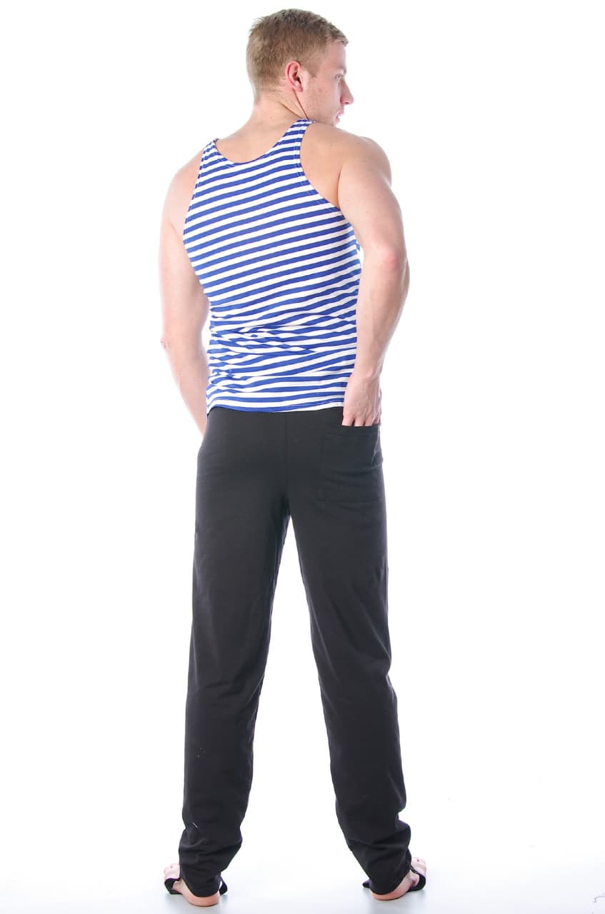 Трико утеплённое со штрипками, изделие свободного покроя, сзади дополнено накладным карманом. Трико изготовлено из двухниточного футера с начёсом, состава 100% хлопок и плотностью 190 гр/м2. Используется в качестве повседневной одежды дома или в осенне-зимний сезон на улице. |