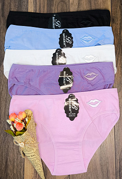 Женские однотонные трусики молодёжной модели из мягкого и эластичного хлопка, спереди небольшая вышивка "губки" Производство Китай. Внимание!!! Продаются упаковкой по 3 шт. разного цвета, без подборки по цветовой гамме! Цена указана за штуку. |