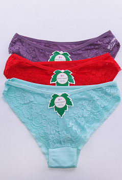 Изящные молодёжные трусики, сзади эластичный хлопок, а спереди кружевные. Производство - Китай. ВНИМАНИЕ!!! Данный товар продается упаковками по 3 штуки разного цвета без подборки по цветовой гамме, цена указана за 1 штуку. |