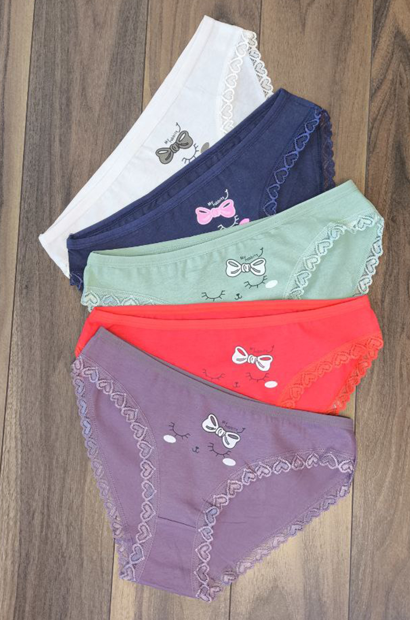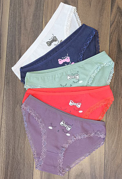 Молодежные однотонные хлопковые трусики-слипы с печатным принтом спереди и кружевом по ножке. Внимание!!! Продаются упаковкой по 3 шт. разного цвета, без подборки по цветовой гамме! Цена указана за штуку. |