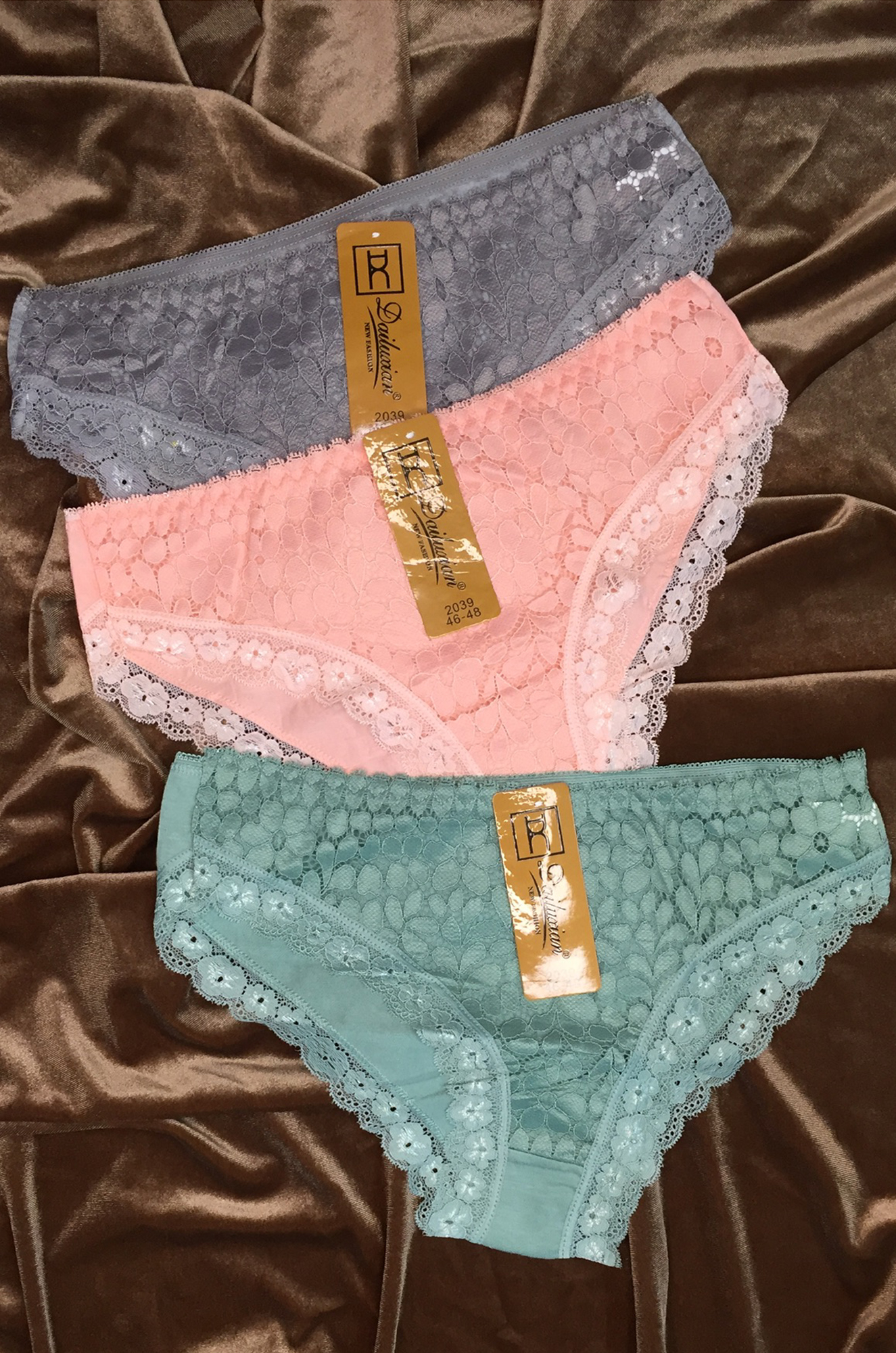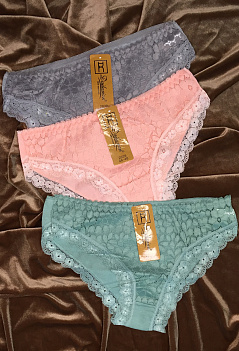 Эластичные маленькие трусики-бикини. Модель спереди полностью из красивого гипюра, сзади - хлопок. ВНИМАНИЕ!!! Данный товар продается упаковками по 3 штуки, цена указана за 1 шт. Производство - Китай. |
