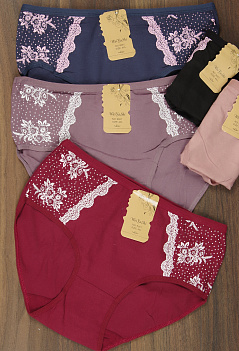 Женские однотонные трусики, по бокам с мелким рисунком. Модель комфортной посадки из хлопка с эластаном. Производство - Китай. ВНИМАНИЕ! Данный товар продается упаковками по 3 штуки разного цвета, без подборки по цветовой гамме! Цена указана за 1 шт. |