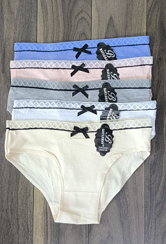 Молодежные однотонные хлопковые трусики-слипы с с эффектной полупрозрачной резинкой и пришитым бантиком. Производство - Китай. Внимание!!! Нижнее бельё продаётся упаковками по 3 штуки разного цвета, без подборки по цветовой гамме. Цена указана за 1 штуку. |