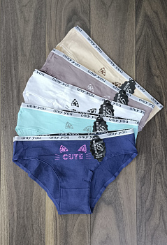 Молодежные однотонные хлопковые трусики-слипы с печатным принтом спереди и тонкой резинкой с надписью. Производство Китай. Внимание!!! Продаются упаковкой по 3 шт. разного цвета, без подборки по цветовой гамме! Цена указана за штуку. |
