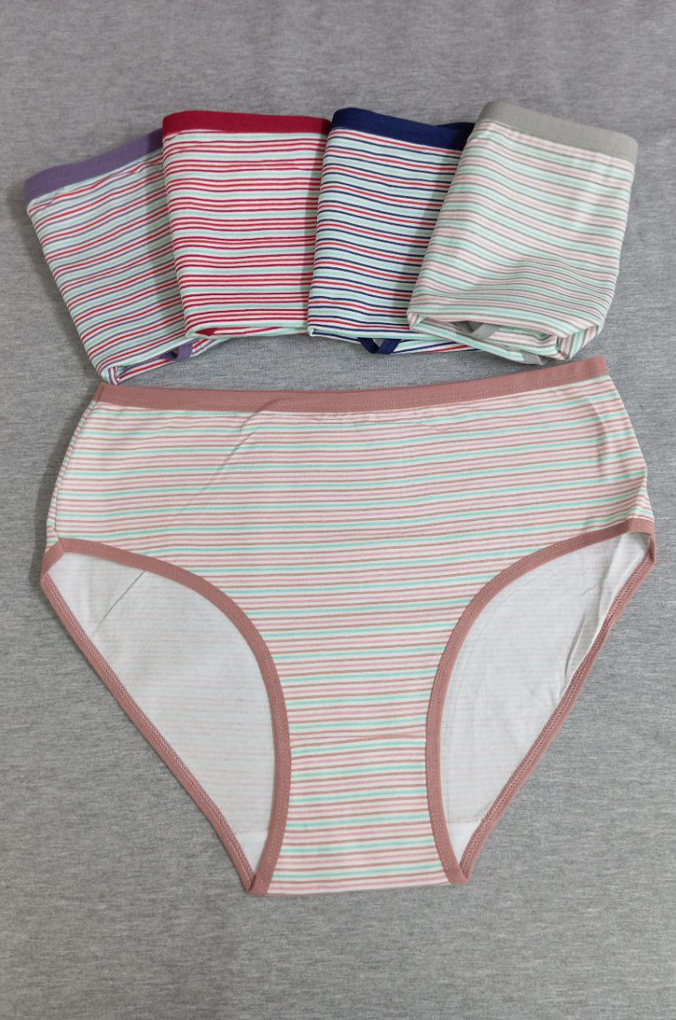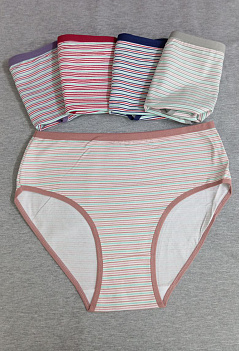 Женские трусики "в цветную полоску" из плотного эластичного хлопка. Модель комфортной средней посадки, с высоким вырезом бедра. Внимание!!! Нижнее бельё продаётся упаковками по 3 штуки разного цвета, без подборки по цветовой гамме. Цена указана за 1 штуку. |