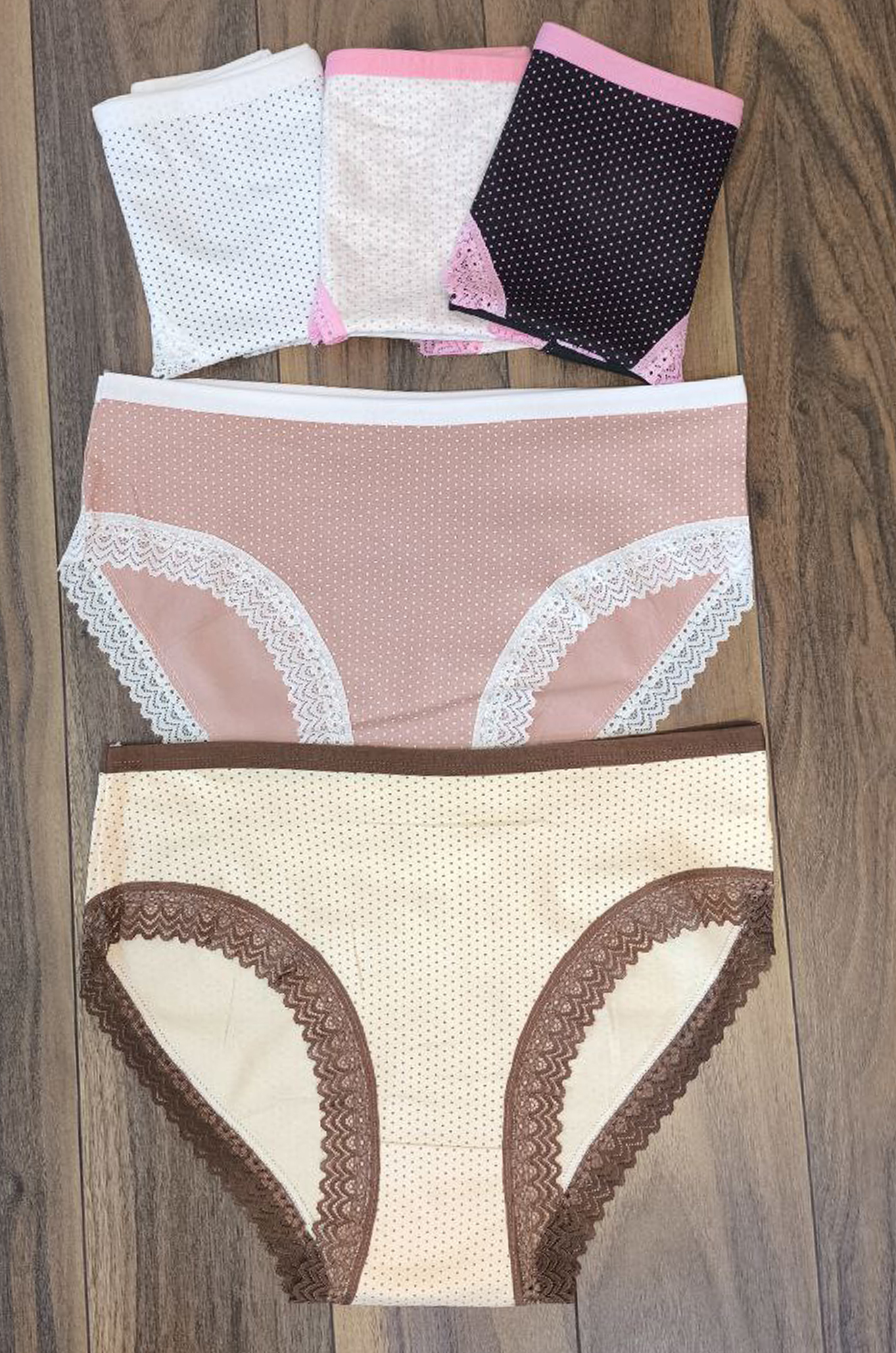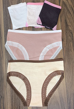 Симпатичная, удобная молодёжная модель трусиков-слипов. Ткань плотный хлопок, набивной рисунок "горошек", по краю кружевная отделка. Производство - Китай. Внимание!!! Нижнее бельё продаётся упаковками по 3 штуки разного цвета, без подборки по цветовой гамме. Цена указана за 1 штуку. |