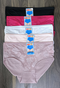 Удобные женские трусики классической модели средней посадки. Спереди из нежного, шелковистого материала с выбитым рисунком, сзади - из однотонного эластичного хлопка. Производство - Китай. ВНИМАНИЕ!!! Данный товар продается упаковками по 3 штуки одного размера разного цвета, без подборки по цветовой гамме! Цена указана за 1 шт. |