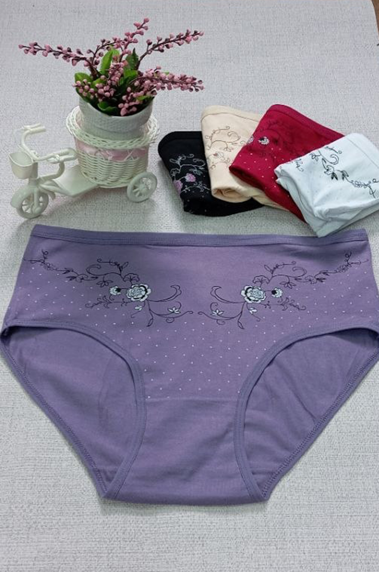 Симпатичные трусики из хлопка с эластаном. Передняя часть с набивным рисунком ВНИМАНИЕ!!! Данный товар продается упаковками по 3 штуки разного цвета, без подборки по цветовой гамме! Цена указана за 1 шт. |