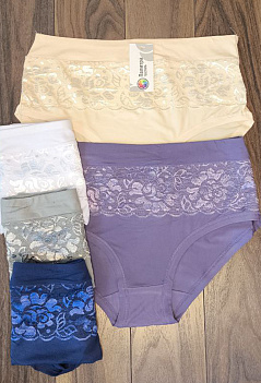 Однотонные женские трусики из бамбуковой нити. Модель средней посадки с кружевной вставкой спереди. ВНИМАНИЕ!!! Данный товар продаётся упаковками по 3 штуки разного цвета, без подборки по цветовой гамме! Цена указана за 1 шт. |