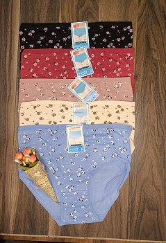 Хлопковые женские трусики с мелким печатным рисунком. Модель удобной посадки, с неглубоким вырезом бедра. Производство - Китай. Внимание!!! Нижнее бельё продаётся упаковками по 3 штуки разного цвета, без подборки по цветовой гамме. Цена указана за 1 штуку. |