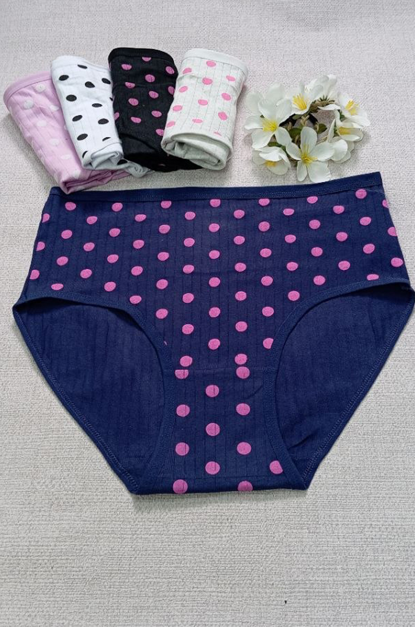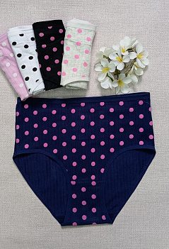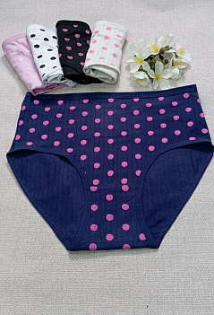 Женские хлопковые трусики с набивным рисунком "горох" из ткани в полоску. Комфортная средняя посадка, узкая резинка. ВНИМАНИЕ! Данный товар продается упаковками по 3 штуки разного цвета, без подбора по цветовой гамме! Цена указана за штуку. |