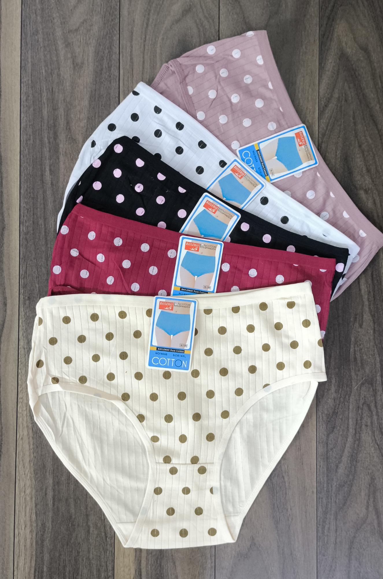 Женские хлопковые трусики с набивным рисунком "горох" из ткани в полоску. Комфортная средняя посадка, узкая резинка. Производство Китай. ВНИМАНИЕ! Данный товар продается упаковками по 3 штуки разного цвета, без подбора по цветовой гамме! Цена указана за штуку. |