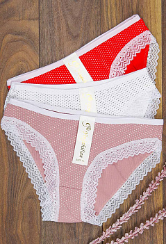 Симпатичная, удобная молодёжная модель трусиков-слипов. Ткань плотный хлопок "в рубчик", по краю кружевная отделка. Производство - Китай. Внимание!!! Нижнее бельё продаётся упаковками по 3 штуки разного цвета, без подборки по цветовой гамме. Цена указана за 1 штуку. |