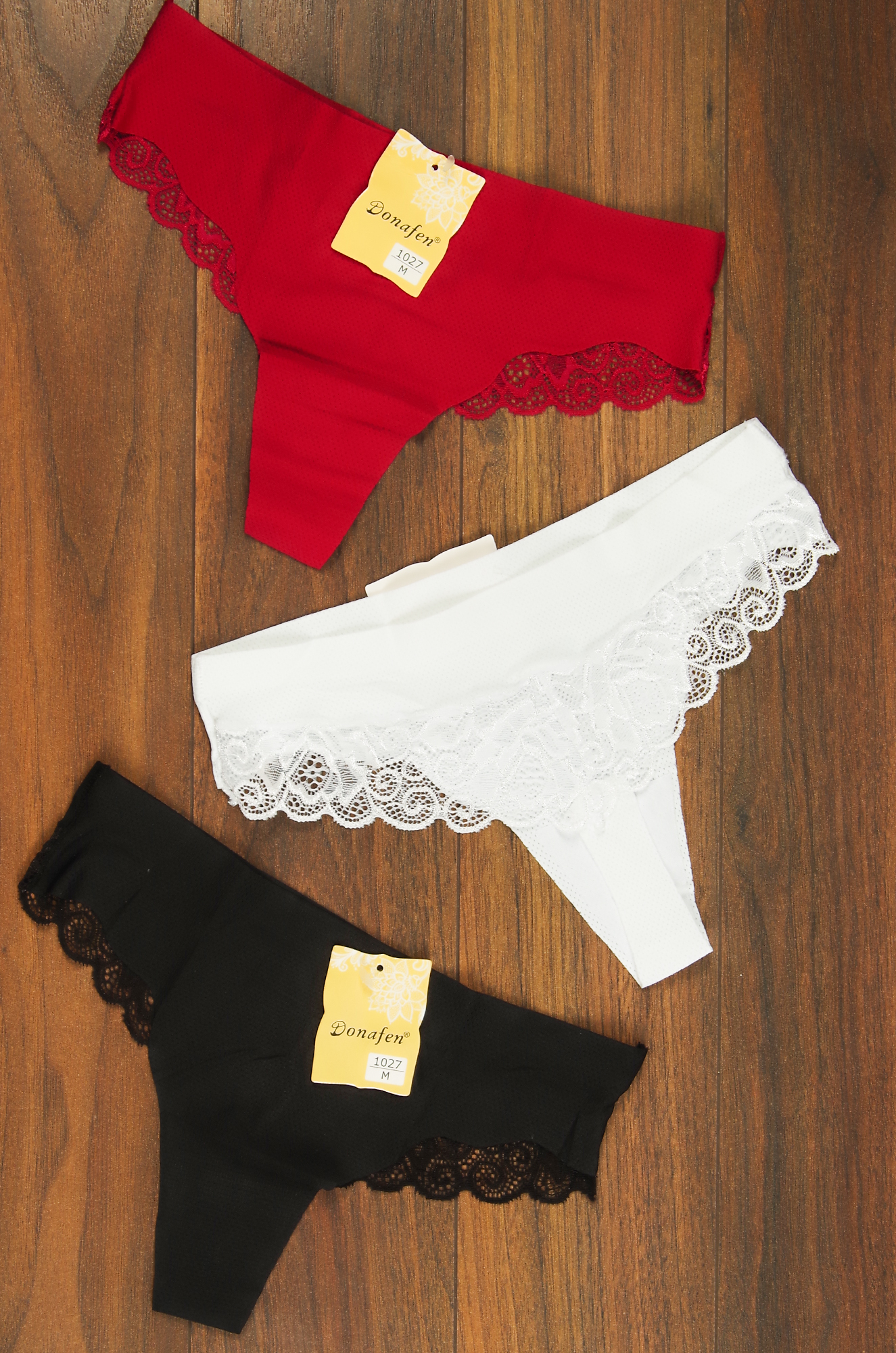 Красивые, сексуальные молодёжные маленькие трусики "стринги" отлично облегающие тело. Сзади кружево, спереди из мягкого, нежного, тонкого, шелковистого и невесомого нейлона, очень приятного к телу. Производство фабричный Китай высокого качества. Внимание! Модель продаётся набором по 2 штуки. Цена на сайте указана за 1 штуку. |
