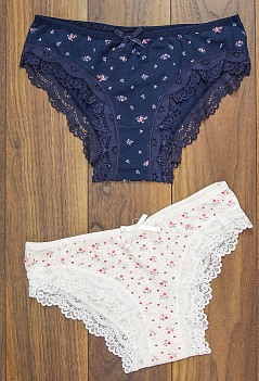 Изящные красивые трусики из мягкого и очень приятного к телу полотна. По краю обработаны кружевной тесьмой. Ткань качественный хлопок с лайкрой. Производство Турция. Внимание!!! Модель продаётся комплектом по 2 штуки разного цвета и рисунка. Цена на сайте указана за 1 штуку! |