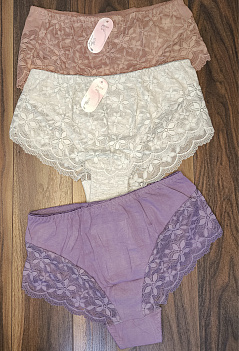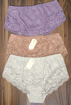 Шикарные комбинированные женские трусики из плотного, мягкого, эластичного, приятного к телу хлопка и сексуального гюпюра. Модная модель с комфортной завышенной посадкой. Область живота "двойная": к телу мягкий хлопок, снаружи гипюр. Производство фабричный Китай высокого качества класса Люкс. Внимание!!! Модель продаётся комплектом по 2 штуки одного размера разного цвета. Цена на сайте указана за 1 штуку! |