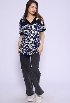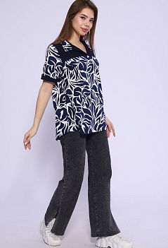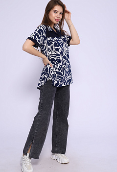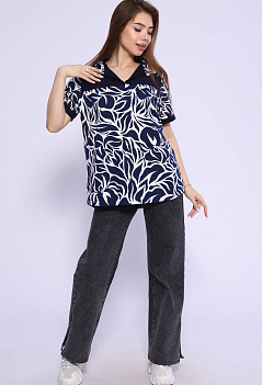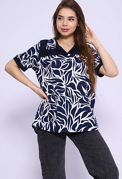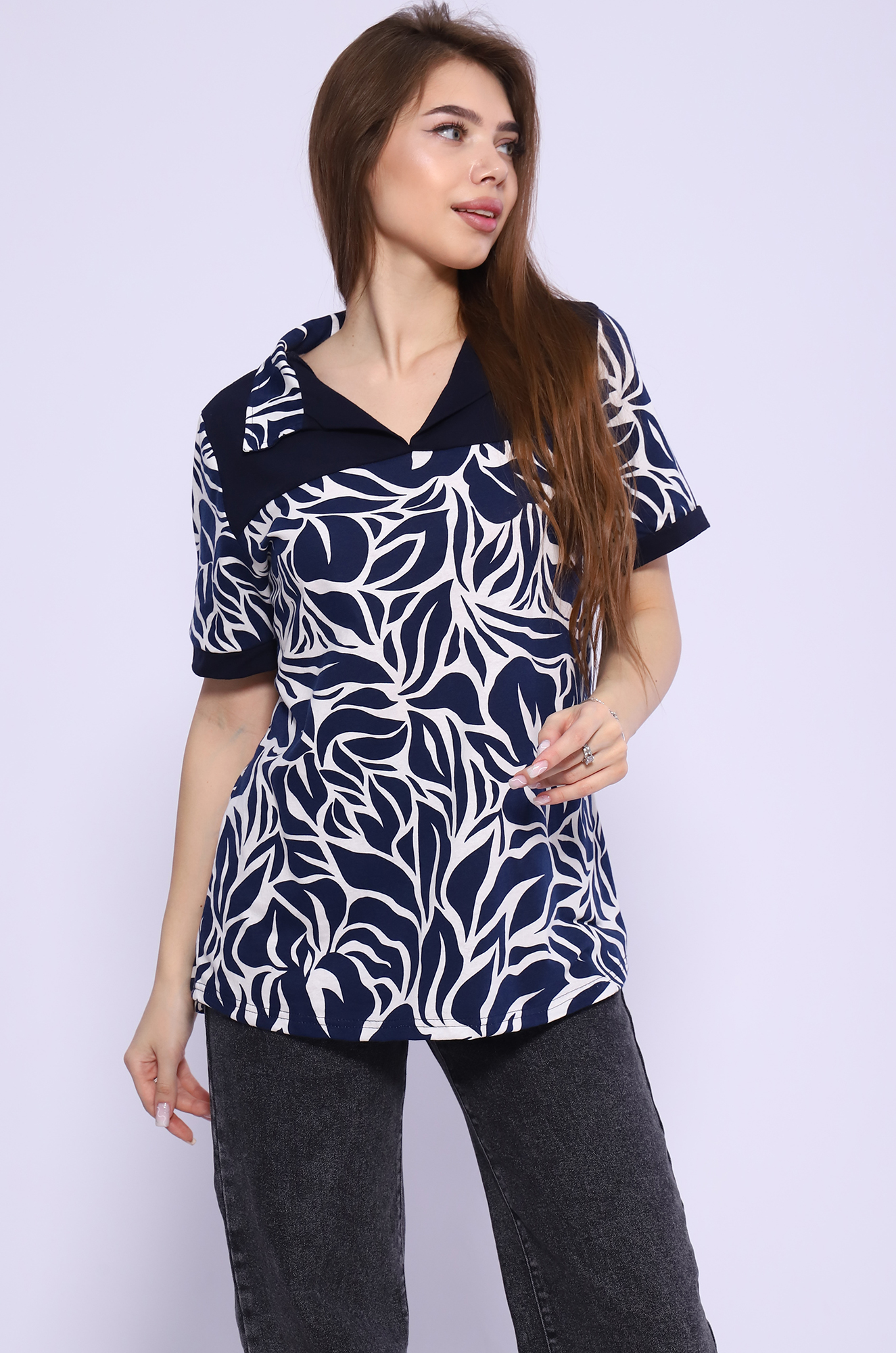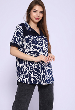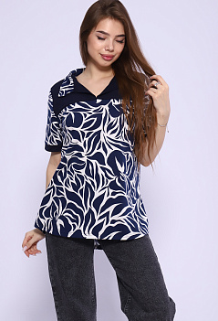 Удобная женская футболка из мягкого хлопка. Модель с отложным воротником, с отрезной кокеткой из однотонной ткани, спинка немного удлинённая, пришивные манжеты на рукавах в тон кокетке. Очень стильно смотрится с джинсами, шортами или леггинсами. Такая модель отлично подходит на любую фигуру и на разный возраст. Ткань кулирка. |