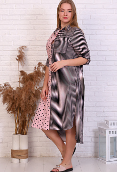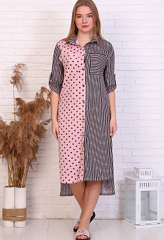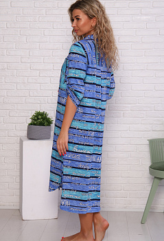 Оригинальная длинная рубашка на пуговицах. Низ изделия асимметричный, по бокам разрезы, на груди накладные карманы. Рукав 3/4, с подхватом на пуговку. Модель свободного прямого кроя, вполне подойдёт под тонкий ремешок. Идеальный вариант для дома или для отдыха на море! Ткань кулирка. |